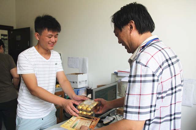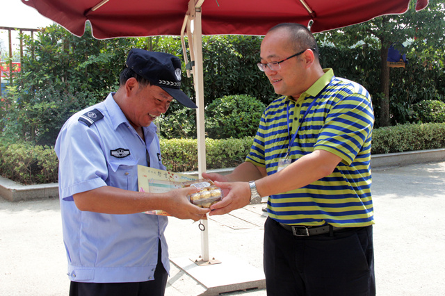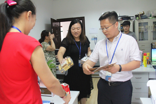 礼物虽轻,情深义重,繁忙的工作中,收到这份惊喜,老师们露出了欣喜的笑容。