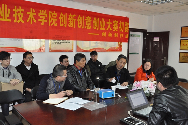 创业类共收到作品22件,在勤政楼会议室进行。有不断试错并坚持不懈创业的周韦强同学带来的“甜品店创业计划书”,有来自云南刘泽轩同学的“一块黑糖的艺术”项目,有来自毛奇老师的具有高淳特色的“步步糕”项目,还有李邢、刘苏两位同学的“早餐谷APP”项目等等,这些项目从市场角度出发,运用“互联网+”思维,创新运营模式,发挥地方特色,得到了在场评委的好评。