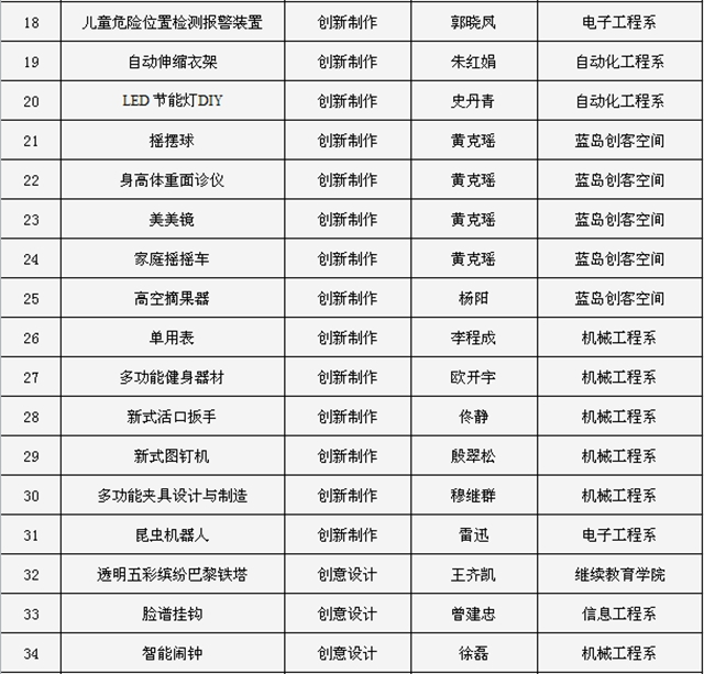 与往届相比,第三届创新创意创业初赛作品在技术含量和实物制作水平上有了明显的提高,作品更具有“实用性”、“技术性”、“原创性”特点。高质量的作品不仅使得比赛过程更具观赏性,还反映出师生创客项目设计与制作能力的提升。