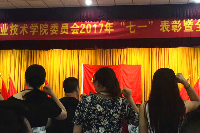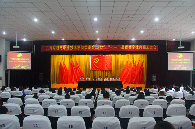 大会开始前,全体党员集体佩戴党员徽章、重温入党誓词。接下来党委副书记、常务副院长顾益明同志通报获得新工集团、机电产业集团优秀党员、党务工作者、先进基层党组织人员及单位。纪委书记、副院长陈赵同志宣读学院“七一”表彰决定,与会领导为受到表彰的先进基层党组织、优秀共产党员、党委工作者颁发了奖牌和证书。