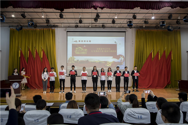 学生工作处处长张宝中宣读《关于2018-2019学年“五·四”红旗团支部、“五·四”青年奖章、优秀团干部、优秀团员、校园十星的表彰决定》。授予电信171团支部等9个团支部“五四红旗团支部”荣誉称号,刘鹏飞等6名同学“五四青年奖章”荣誉称号,杨永勐等83名同学“优秀团干部”荣誉称号,余心茹等113名同学“优秀团员”荣誉称号,王志鹏等10名同学“校园十星”荣誉称号,邓洁等267名同学“校园十星提名奖”荣誉称号。