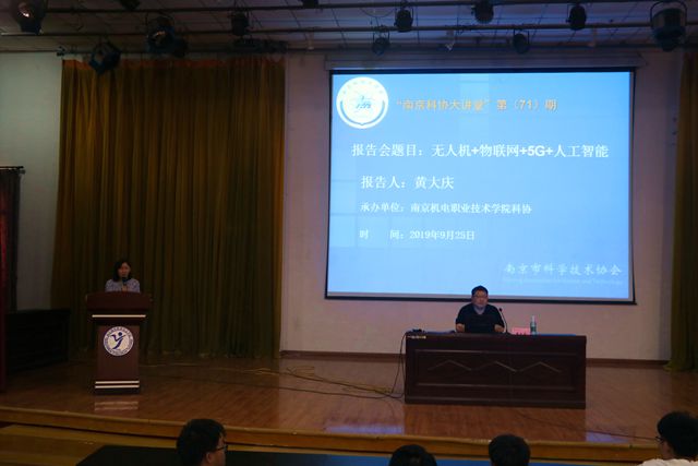 9月25日下午,由南京市科学技术协会主办、乐投线上平台(集团)官方网站承办的第71期南京科协大讲堂在我院报告厅隆重举行。来自京航空航天大学无人机研究院副总工程师、研究员、博士生导师黄大庆教授为大家带来了题为“无人机+物联网+5G+人工智能”的主题报告。南京机电学院270名师生代表听取了报告。