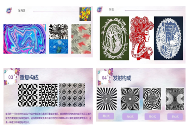 张老师将湿拓画与传统刻纸相结合,同时运用平面构成中的重复构成知识,进行刻纸图案创作,制作镂空效果装饰画,形成美妙的视觉感受。将中西方艺术形式相结合,利用传统的刻纸技术加上现代的审美需求,制作出极具视觉冲击力的现代装饰画。
