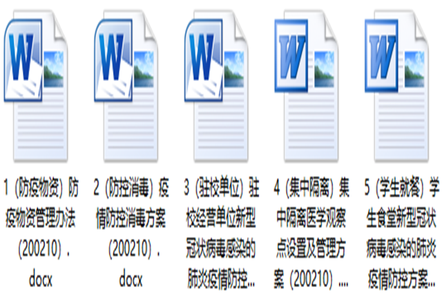 编写了《防疫物资管理办法》、《学生食堂新冠肺炎疫情防控方案》、《集中隔离医学观察点设置及管理方案》、《住校经营单位新冠肺炎疫情防控方案》、《新冠肺炎疫情防控校园消毒方案》等五个应对新冠肺炎疫情工作方案(1.0版)。经过组员们热烈讨论与方案推演,对各个方案具体实施细节、相关流程做出完善与修改,在1.0版本基础上编制出后勤处应对新冠肺炎疫情工作方案(2.0版)。做到精准施策,让防控工作有规可循,将防控责任具体落实到每一个环节、每一个人,切实提高疫情防控的科学性和有效性。