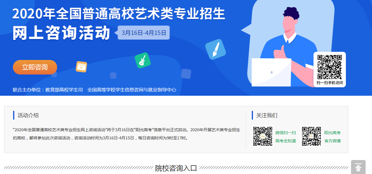2020年全国普通高校艺术类专业招生网上咨询开通了