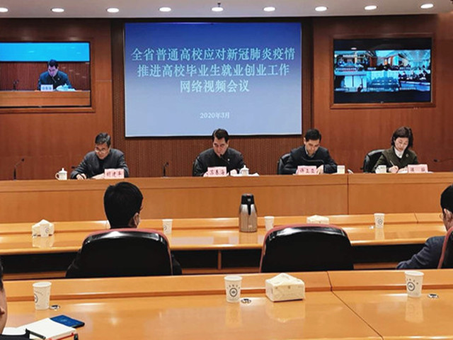 3月27日,省教育厅召开全省普通高校应对新冠肺炎疫情推进高校毕业生就业创业工作网络视频会议,学习贯彻习近平总书记在统筹推进新冠肺炎疫情防控和经济社会发展工作部署会上的重要讲话及系列指示批示精神,回顾总结疫情防控以来全省高校毕业生就业创业工作,分析研判当前的就业形势,积极推进我省高校2020届毕业生就业创业工作。省委教育工委副书记苏春海出席并讲话。我院党委委员、副院长赵学洪,学工处处长张宝中,各系书记和学工干事,就业创业中心全体人员以网络视频形式参加会议。