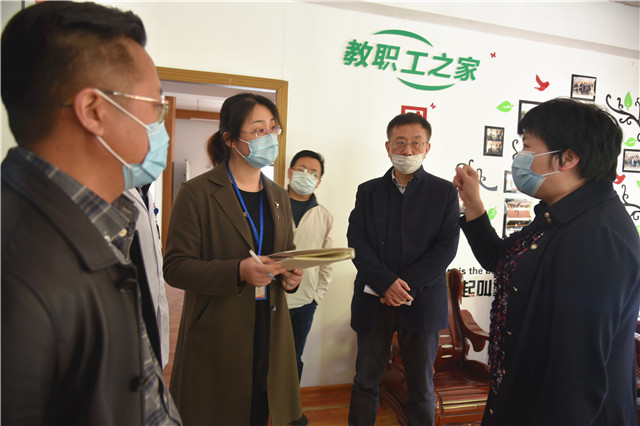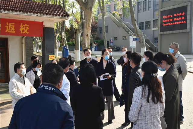 麒麟街道办事处副主任汪春华一行分组对校门口体温检测设备、疫情防控联合工作组办公室、集中隔离医学观察点等地进行了现场查看。汪主任表示,针对学校在疫情防控过程中存在的问题和困难,麒麟街道将给予学院最大支持和帮助,希望地校双方加强信息共通共享,切实做好重点人员管控,共同担起联防联控主体责任,共同打赢疫情防控阻击战。