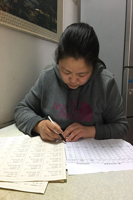 老师们连夜制作学生教材袋标签