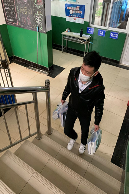 从教学楼到宿舍区,这条路每天都要走上好几遍,今天,这条路却格外“遥远”:解决31022本教材、33630练习本在校园内的“最后一公里”,老师们的私家车秒变“货拉拉”,李书贵老师、刘丽平老师主动腾空了自己私家车的后备箱,用于教材在校内的运送。杨晓飞老师、李宝华老师化身临时“货车司机”,来回运送教材,顺利完成了教材从存放区到宿舍区的“大挪移”。