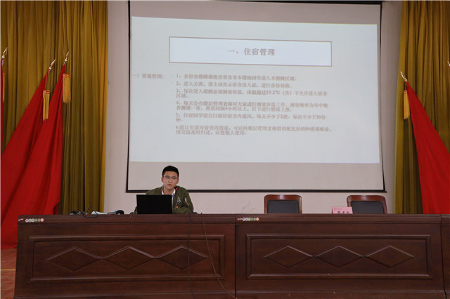 全天的志愿者培训共分为三场,分别由学生工作处处长张宝中、后勤处处长周志刚以及学生生活与服务管理中心主任张进宝就报到要求和开学后校园管理、学生宿舍区域防控管理以及后勤医疗保障疫情防控指南开展培训教学。