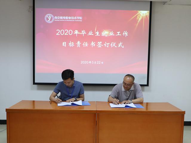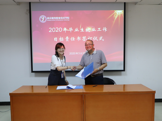 会上,就创(资助)中心主任沈小军、顾窗林老师分别总结了近阶段学院就业云服务的举措,分析了前期就业服务需求调查情况;同时汇报了学院2019届、2020届毕业生就业工作情况以及2020届毕业生顶岗实习情况的统计数据分析。接着,赵院长代表学院与各系签订了《2020届毕业生就业工作目标责任书》。