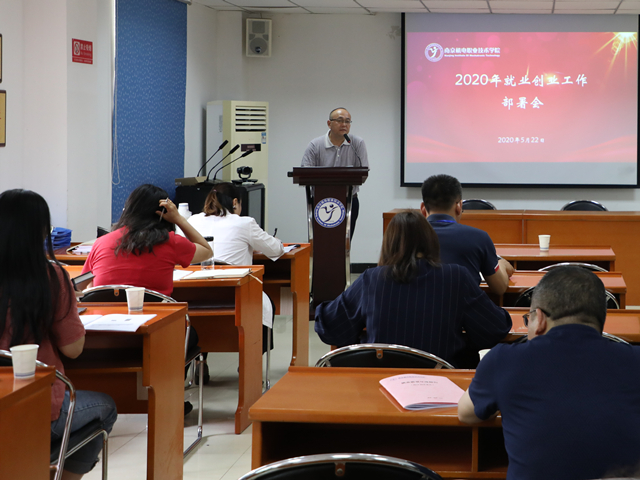 为了学习贯彻习近平总书记要让高校毕业生顺利毕业、尽早就业的重要讲话精神。5月22日下午,我院在弘德楼107会议室召开2020年就业创业工作部署会。党委委员、副院长赵学洪,学工处处长张宝中、教务处处长陈云霞、质控办主任李清、各系主任和书记、全体学工干事及就创(资助)中心工作人员参加了会议,部署会由学工处处长张宝中主持。
