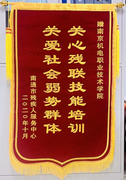 10月27日上午南通市残疾人服务中心专程为学院送来锦旗,以感谢学院在为期10天的机械加工数控编程课程赛前集训中给予学员们的贴心服务。