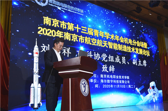 11月10日,南京市第十三届青年学术年会机电分会场——2020年南京市航空航天智能制造技术发展论坛在乐投线上平台(集团)官方网站举行,此次论坛围绕“新技术、新机遇、新未来”主题展开。论坛邀请了东南大学教授、博导费树岷先生,南京工程学院&康尼机电产业技术研究院副院长、教授郁汉琪先生,南京中科煜宸激光技术有限公司副总工程师史建军先生,乐投线上平台(集团)官方网站智能制造学院教师、高级工程师施琴慧女士五位专家作主讲嘉宾。南京市科协党组成员、副主席刘启祥,学会部部长孟亮,南京市科协企事业部主任科员袁亮,海尔数字科技(南京)有限公司副总经理王培卜,乐投线上平台(集团)官方网站党委副书记、纪委书记、副院长陈赵 ,党委委员、副院长刁爱军,智能制造学院执行院长潘理平等领导出席活动,南京机电学院全体教师与学生代表400多人听取论坛报告。论坛由乐投线上平台(集团)官方网站科研及校企合作处王子灿老师主持。