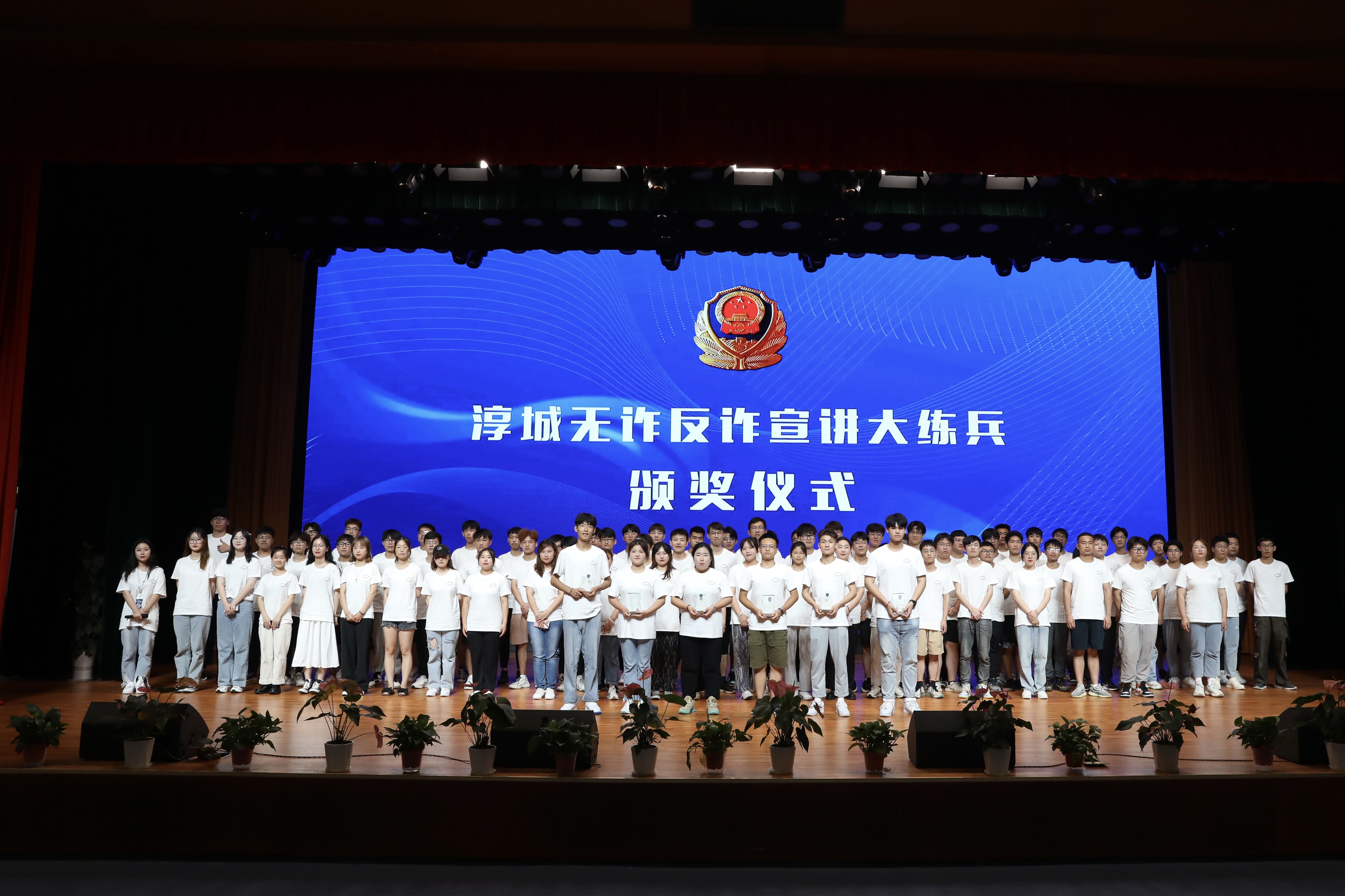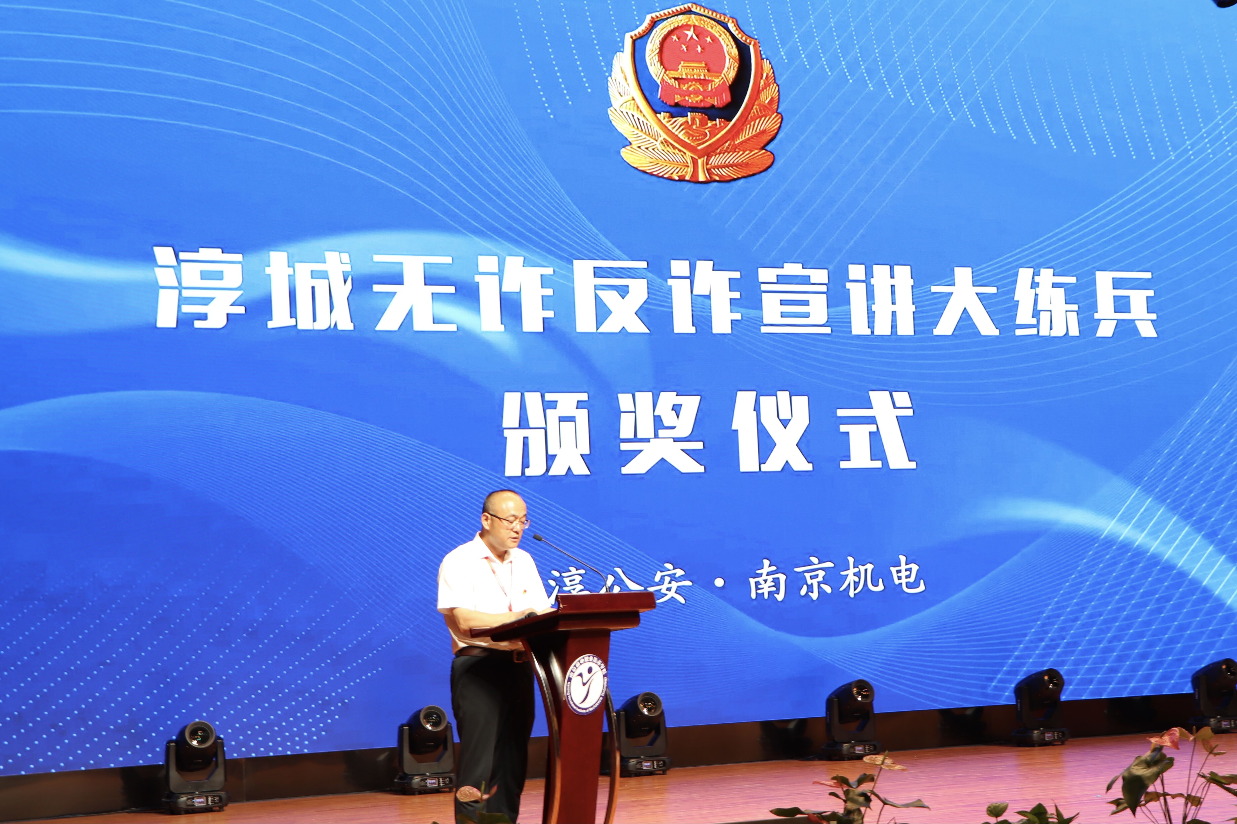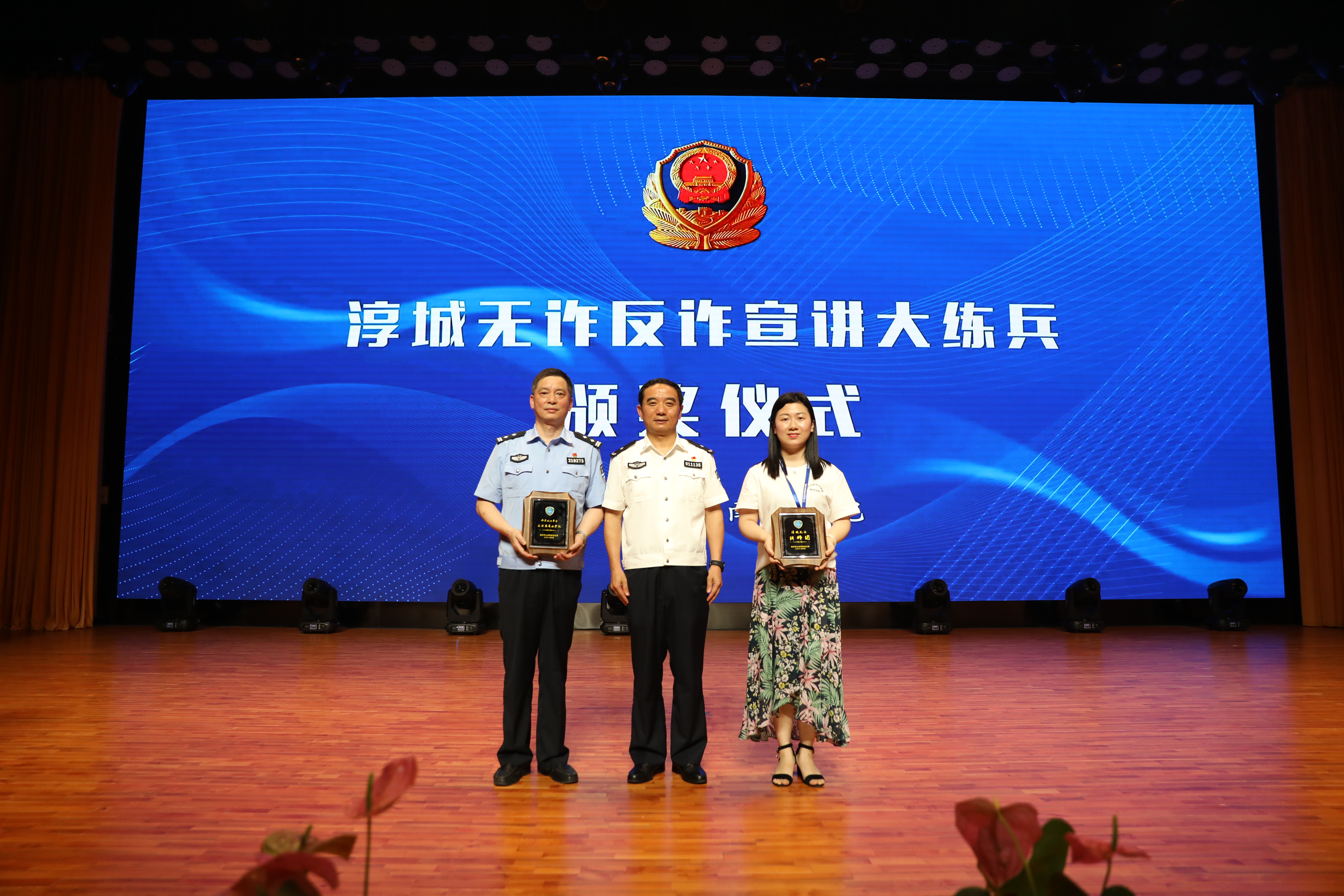 纪圣智为“淳城无诈讲师团”和学校“反诈志愿小分队”授牌,并为“最佳讲师”颁奖。