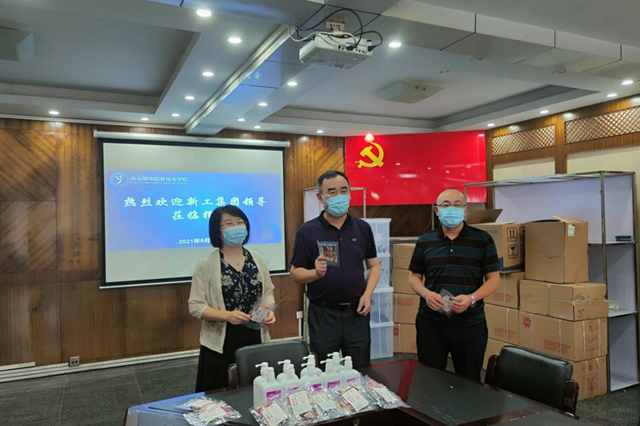 洪总一行听取了学校防疫工作和开学准备情况的汇报,慰问了暑期坚持在一线工作的同志。洪总对学院疫情防控工作予以充分肯定,指出疫情防控、高淳校区二期建设和稳定教育教学秩序是学校当前三项重点工作。目前南京市疫情形势虽有好转,但全校上下一定不能麻痹松懈,要严格落实省、市相关防疫要求,与属地做好联动,确保实现零输入、零感染的目标。洪总强调,安全是发展的前提,学校要提前谋划,完善相关制度, 细化预案,有序组织学生分批返校。要积极开展健康教育,全力保障师生生命安全和身体健康,确保新校区建设和学校正常教育教学工作顺利开展。