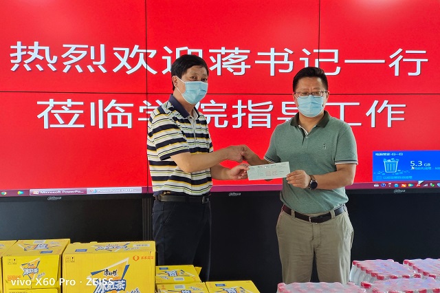 炎炎夏日,持续高温,“秋老虎”来袭,热情似火。虽然正值暑期和疫情防控阶段,但是学校招生、财务、后勤、安保等工作和新校区建设仍在开展。8月31日,南京机电集团纪委书记蒋斌一行专程来我校看望慰问坚守在一线的教职工,并亲手送上一缕清凉和一份关怀。