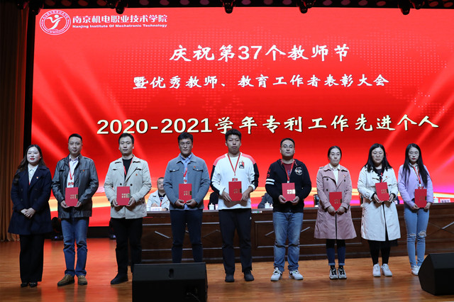 2020-2021学年专利指导最佳搭档、专利工作先进个人、先进集体等受表彰的个人和集体依次上台领奖。大会现场颁发学校第六届“创维杯”创新创意创业大赛暨第七届中国“互联网+”大学生创新创业大赛校内选拔赛优秀组织奖。随后进行2020-2021学年学生管理工作先进个人、先进集体表彰及颁奖。