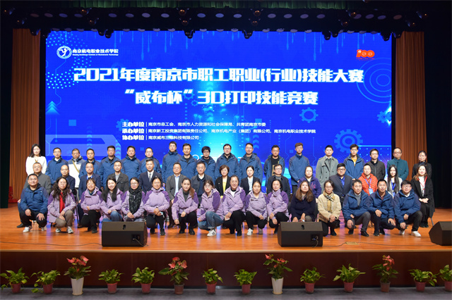 为不断提高技能人才钻研技术的积极性,建设技能型社会,11月28日,由南京市总工会、南京市人力资源和社会保障局、共青团南京市委员会共同主办,南京新工投资集团有限责任公司、南京机电产业(集团)有限公司与乐投线上平台(集团)官方网站承办,南京威布三维科技有限公司协办的2021年南京市职工职业(行业)“威布杯”3D打印技能竞赛在乐投线上平台(集团)官方网站顺利举行,来自全市12家相关专业院校、企业选拔的40名选手参加了本次竞赛。高淳区总工会党组书记、常务副主席陈亭,南京新工投资集团党委副书记、工会主席吴启宁,南京机电产业集团党委副书记、副总经理、工会主席顾永宁,乐投线上平台(集团)官方网站党委书记、院长周庆礼,南京威布三维科技有限公司董事长周海鹏等相关领导参加开幕式。