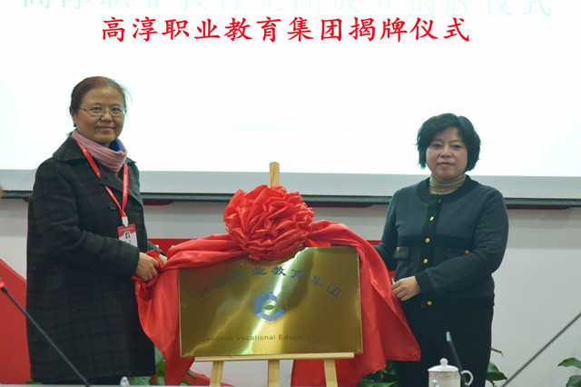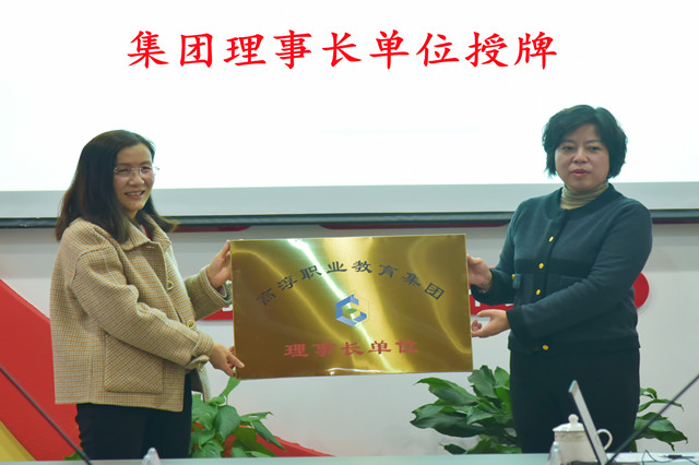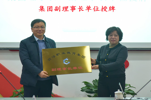 会上高淳区教育局副局长吕明霞、乐投线上平台(集团)官方网站党委副书记陈赵共同为高淳职业教育集团揭牌。吕明霞为集团理事长、副理事长单位授牌。