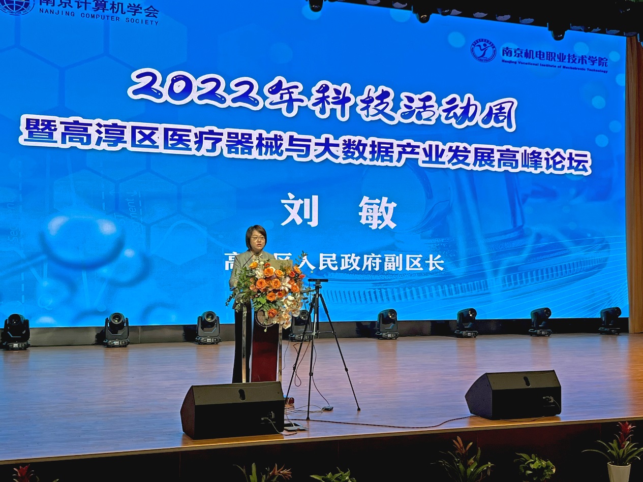 本次活动由南京市科学技术协会举办,南京计算机学会和乐投线上平台(集团)官方网站承办,江苏省生物医学工程学会、江苏医疗器械大数据中心、高淳区医药大数据中心和南京高等职业教育创新创业园协办。江苏省科学技术协会党组成员、副主席李千目,南京市科学技术协会一级调研员虞永才,高淳区人民政府副区长刘敏,南京高等职业教育创新创业园副主任孙爱国,高淳区科协技术协会副主席杨腊斌,江苏省生物医学工程学会常务副理事长王俊、秘书长吕华,南京计算机学会秘书长王继锋,乐投线上平台(集团)官方网站党委副书记、副院长陈赵等领导出席活动。高淳区相关部门以及高职园、相关部门负责人、行业协会、机电学院师生代表共350人听取论坛报告。本次活动采用线下会议与视频直播相结合的形式,活动由乐投线上平台(集团)官方网站党委委员、副院长刁爱军主持。