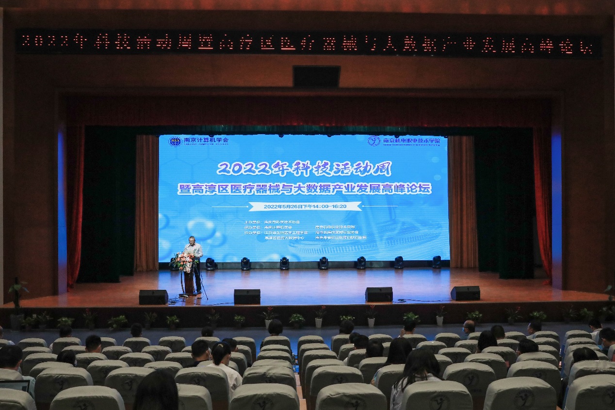本次活动由南京市科学技术协会举办,南京计算机学会和乐投线上平台(集团)官方网站承办,江苏省生物医学工程学会、江苏医疗器械大数据中心、高淳区医药大数据中心和南京高等职业教育创新创业园协办。江苏省科学技术协会党组成员、副主席李千目,南京市科学技术协会一级调研员虞永才,高淳区人民政府副区长刘敏,南京高等职业教育创新创业园副主任孙爱国,高淳区科学技术协会副主席杨腊斌,江苏省生物医学工程学会常务副理事长王俊、秘书长吕华,南京计算机学会秘书长王继锋,乐投线上平台(集团)官方网站党委副书记、副院长陈赵等领导出席活动。高淳区相关部门以及高职园、相关部门负责人、行业协会、机电学院师生代表共350人听取论坛报告。本次活动采用线下会议与视频直播相结合的形式,活动由乐投线上平台(集团)官方网站党委委员、副院长刁爱军主持。