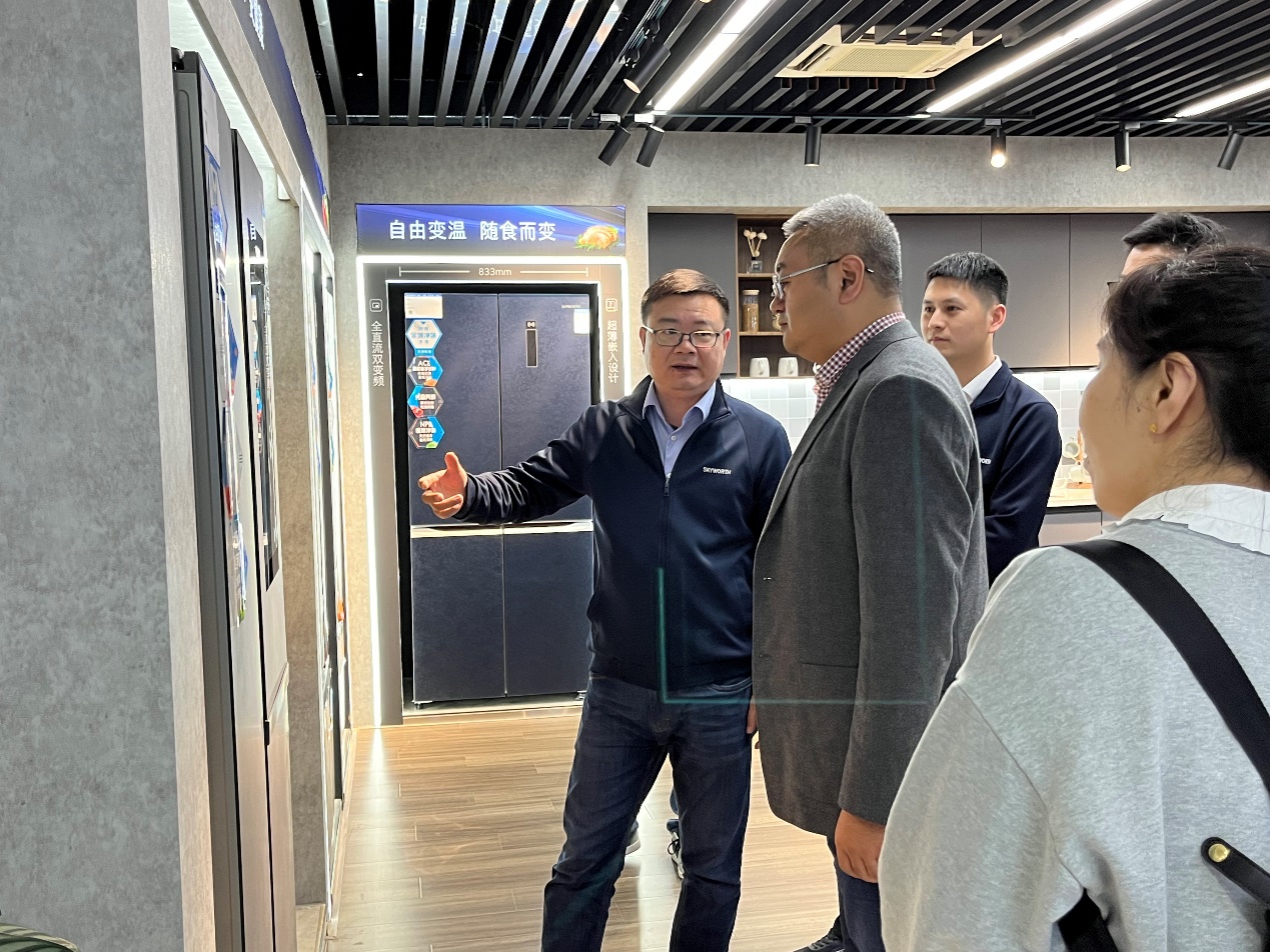 授牌仪式结束后,学校一行人在企业导师的陪同下参观了创新中心CMF实验室,见证了创维电器股份有限公司的技术及设计研发实力,详细了解了公司的发展历程、科研成果及业务领域等概况。参观期间,老师与企业人员针对产品创新特点和应用领域进行了充分交流。