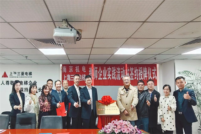 为进一步深化校企合作,强化高素质“双师型”教师队伍建设,推进教师深入企业开展实践锻炼, 2022年11月17日学校应邀前往上海三菱电梯有限公司举行“南京机电-上海三菱电梯教师企业实践流动站”签约授牌仪式。上海三菱电梯有限公司华东一区总经理殷晓晔,总部培训中心总经理王水来,总部培训中心总教务长朱武标,江苏地区维保总监蒋继荣,江苏地区教务长秦勇泉,江苏地区人事主管张愉,学校党委委员、副院长刁爱军,科研与校企合作处处长李木香,教务处副处长丁荣乐,智能制造学院院长自动化工程系主任潘理平、自动化工程系书记高水冕,企业导师及学校进站教师出席本次签约授牌仪式。