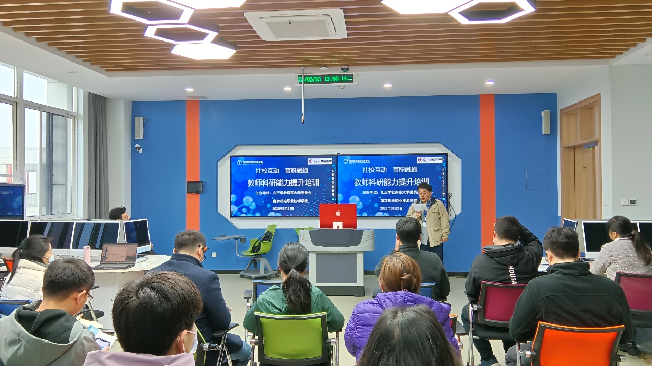 为提升高职院校教师科学研究能力,提高科研项目申报书撰写质量, 3月21日下午,由九三学社南京大学委员会和乐投线上平台(集团)官方网站共同主办的“社校互动 普职融通”教师科研能力培训活动在乐投线上平台(集团)官方网站博学楼408智慧教室举行。活动采用线上+线下相结合的方式,九三学社南京大学委员会副主委、南京大学天文与空间科学学院教授陈鹏飞线上交流,南京大学天文与空间科学学院副教授徐晓杰作了主题讲座和项目辅导。拟申报2023年度江苏省高等学校基础科学(自然科学)研究面上项目和其他相关纵向科研项目的教师参加了本次培训。