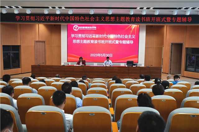5月30日,学校学习贯彻习近平新时代中国特色社会主义思想主题教育读书班开班。党委书记周庆礼作开班动员讲话,南京师范大学洪光东教授为全体参会人员作专题讲座,会议由党委副书记陈赵主持。