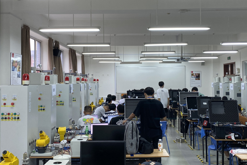 大赛自2023年初开展以来全国高校师生中反响强烈,全国322支高校代表队报名参加了初赛。经过预赛,最终共有120所高校脱颖而出,进入了全国总决赛的角逐。本届全国总决赛在大连举办,大赛决赛着重考核参赛选手在基于Ethernet的工业DCS系统网络架构下的网络搭建、伺服运动控制、数据交互与监控、人机交互界面等方面的编程及调试能力,以及对物联网平台的理解与应用。参赛选手从项目创建、功能实现、创新和特色、作品成果展示等方面接受教育部自动化类专业教指委七位专家的质询和打分。