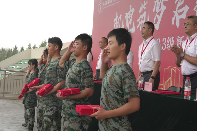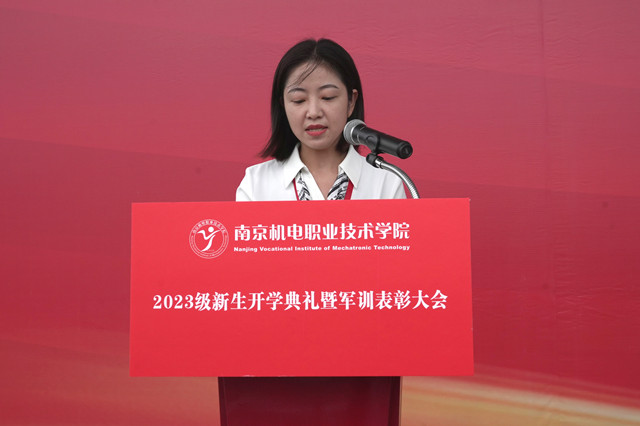 全体2023级新生齐诵大学生誓言,以新“机电人”身份立誓:克服惰性,锤炼道德修养,勇攀技术高峰,以宽容对待挫折,用勤奋创造成绩,不负父母的期盼,不负恩师的教诲!立志用实际行动践行“请党放心、强国有我”的铮铮誓言。
