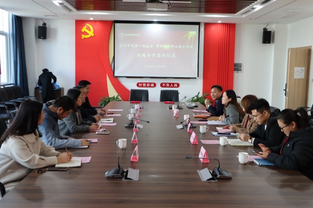 签约仪式上,双方就拓宽残疾人就业渠道、技能竞赛选手培训、残疾人培训课程开发、残疾人事业研究、建立联席会议制度等展开讨论。