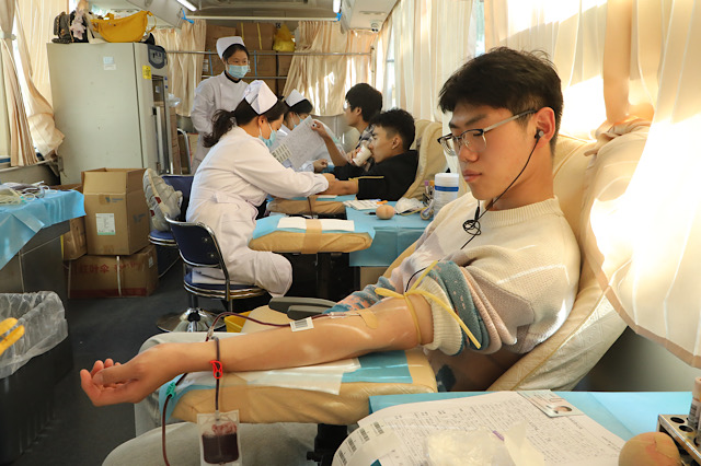 活动现场,献血者在工作人员的引导下认真填表、化验、献血。在献血区,前来献血的同学们纷纷挽起袖管,献出自己的青春热血。等待献血期间,同学们紧张而兴奋,其中不乏参加过好几次献血活动的同学,但是他们仍旧为自己的行动能给需要的人提供帮助、挽救更多的生命而感到高兴。