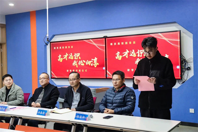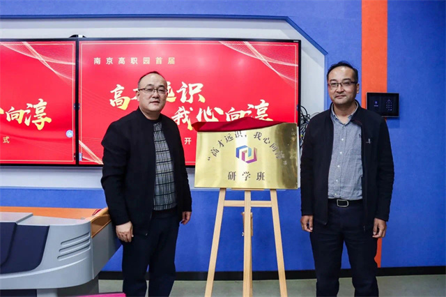 开班仪式最后,学校党委副书记、副校长赵学洪和南京高职园党工委委员、管委会副主任汪春荣作为校地双方代表为研学班揭牌。