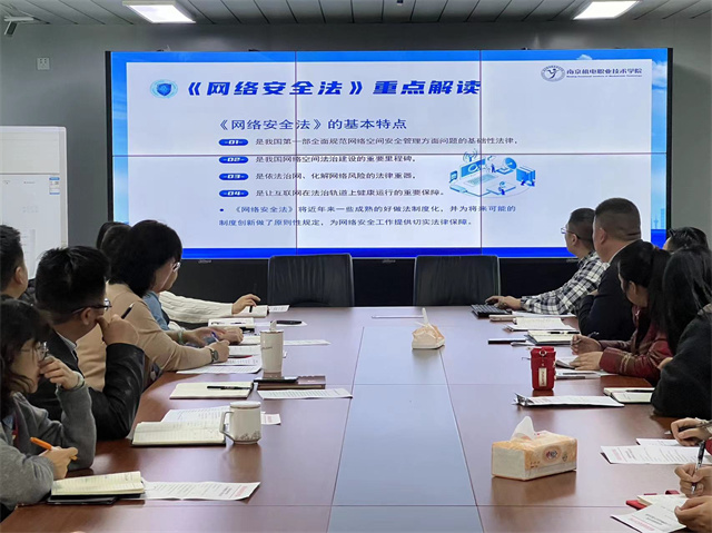 参会人员观看了南京市委网信办制作的《“网安2023”暨“蓝剑护网2023”专项行动》警示教育片,并认真学习了《中华人民共和国网络安全法》。