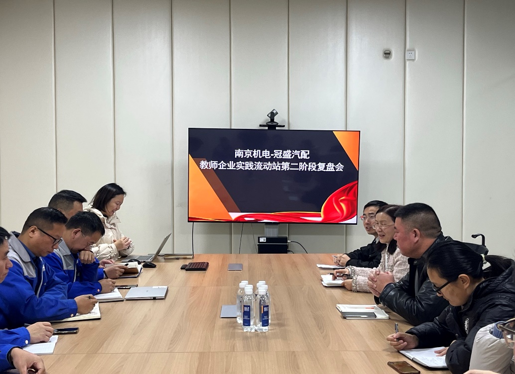 近日,南京机电--冠盛汽配教师企业实践流动站举行第二阶段复盘活动。南京冠盛汽配有限公司OE技术中心高级经理潘天林,OE工艺经理安顺强,HRBP经理邵晗,学校科研及校企合作处处长李木香,机械工程系书记李杰,流动站负责人吴彬及进站教师代表参加本次复盘活动。本次活动由科研及校企合作处处长李木香主持。