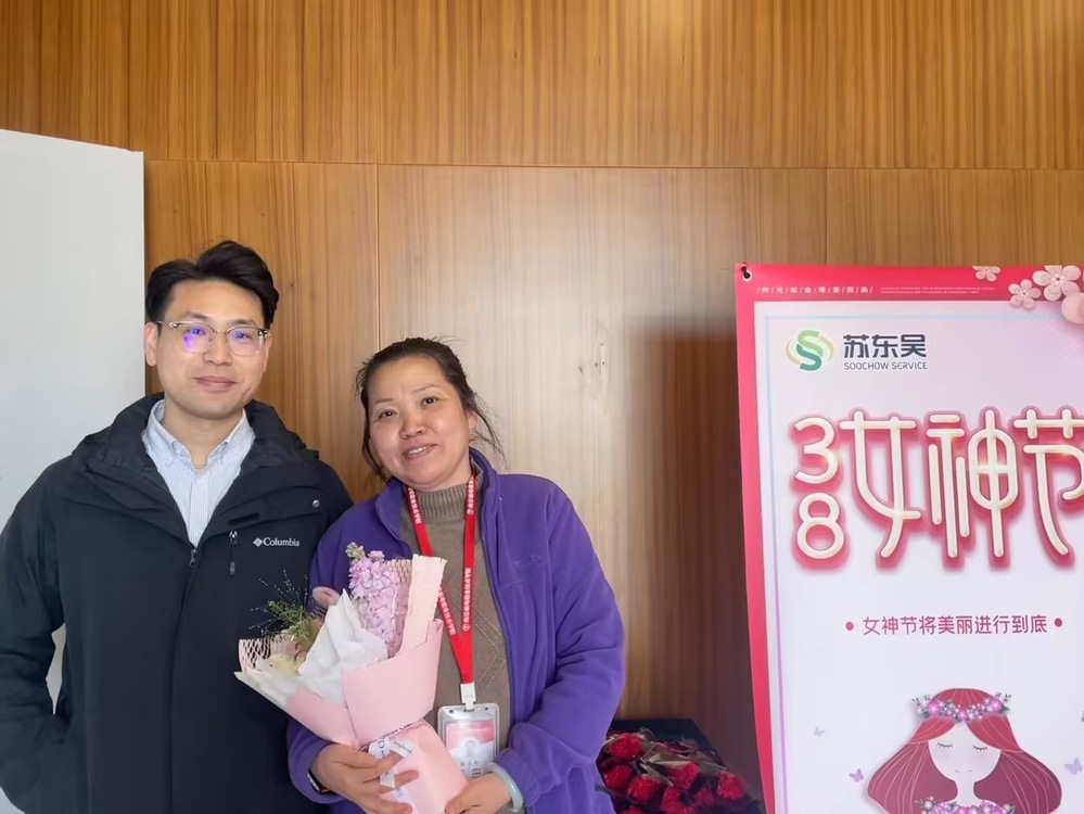3月8日中午,物业工作人员来到一粟堂楼下,手捧鲜花,为女教职工献上鲜花和祝福。过去的一年里,机电学院的巾帼之花们以奋斗的姿态,用高度的责任心和使命感,在工作岗位上挥洒汗水,展现出“巾帼不让须眉”的风采。