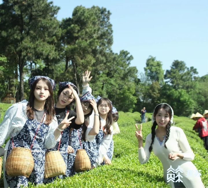 穿梭在茶树林中,学生们认真地寻找着适宜采摘的叶芽,用食指和拇指掐住叶间幼梗的中部细细采下,小心翼翼放进茶篓里,不一会儿茶篓里便满载茶叶,四处留香。
