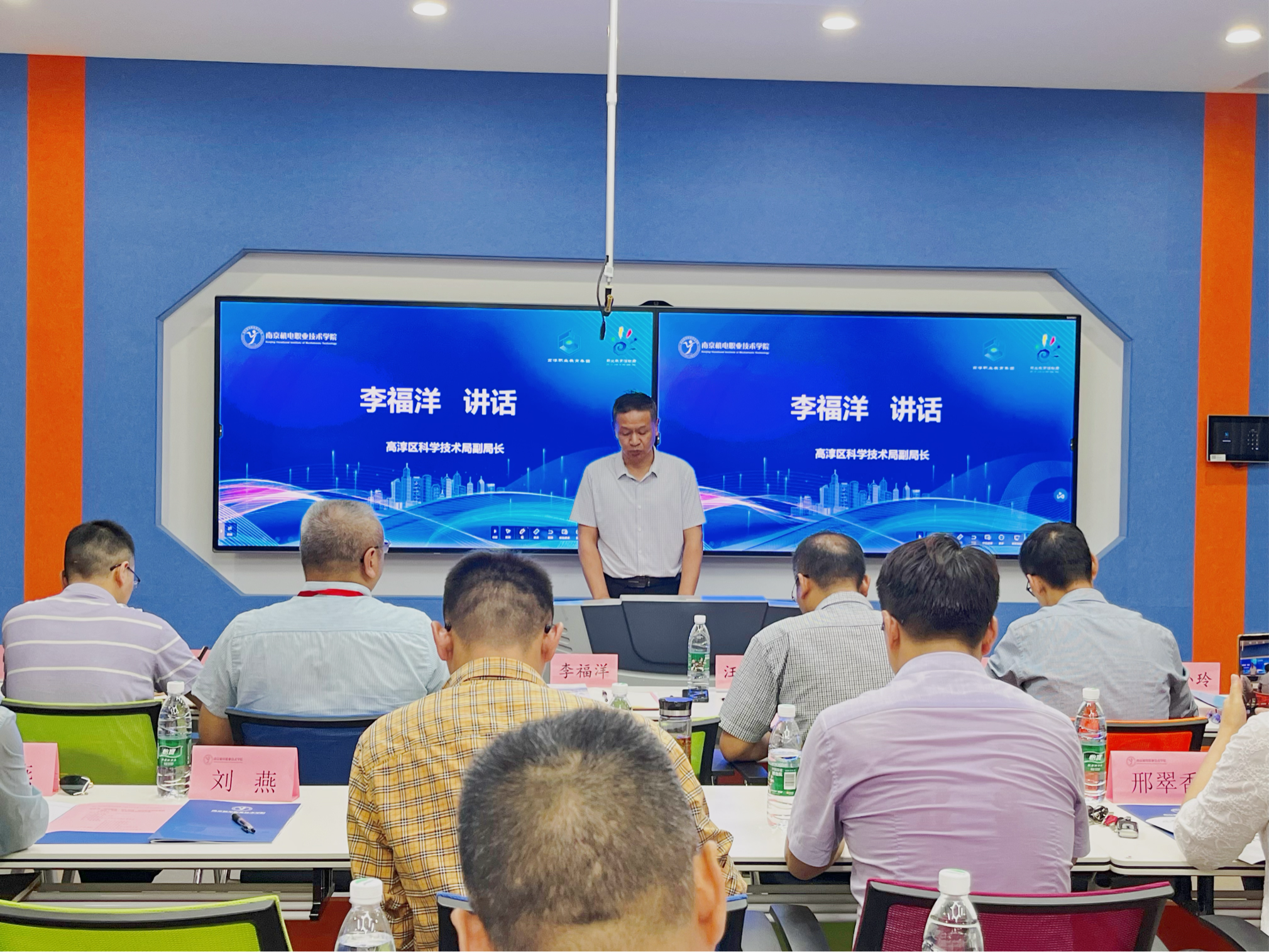 开幕式在博学楼智慧教室410举行。致辞中,刁爱军介绍,高淳职业教育集团始终秉持“合作交流、资源共享、互惠共赢、协同发展”的理念,不断探索“职教集团+”的新发展模式,逐步形成了“政府+职教集团+学校+园区+企业”的互利共赢新格局。他表示科技(专利)成果对接会旨在搭建产学研深度融合平台,精准对接各方需求,促进科技成果转化为实际生产力。李福洋在讲话中表示科技(专利)成果对接会把高职教育的“教、研”和科技企业的“技、产”紧密结合、始终贯穿在一起,是三方互相奔赴、互相赋能、互相成就的共赢之路。