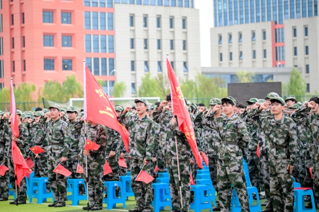 学校党委书记、校长周庆礼以《躬身笃行,逐光奋进》为主题在大会上发表讲话。他代表学校向来自18个省份的2670名新生表示祝贺和欢迎,向陪伴孩子们成长的家长、悉心教导的老师和支持完成军训的全体教官致以崇高的敬意,并向同学们提出了“十个一”的要求:进行一次认真彻底的宿舍大扫除,参加一个让自己成长的社团,和老师认真探讨一次专业问题,创作一件创意创新作品,做一份较为细致的职业规划书,写一封给父母和最亲近的人的信,读一本能改变自己的名著,找到愿意和自己一同前进的一群伙伴,练就一副好身体,保持一颗积极进取的心。让同学们从读好书、长才干、会交流、懂合作、会感恩等方面来培养个人修养。同时也鼓励同学们要积极融入社会并投身建设,在实践中实现自我价值,遇到更好的自己。最后他希望,全校师生与鲲鹏齐飞,秉承“知行合一,自强不息”的校训精神,勤学善思、明理笃行,以更加饱满的昂扬斗志和一往无前的奋进姿态,奋力书写为中国式现代化建设挺膺担当的青春篇章!