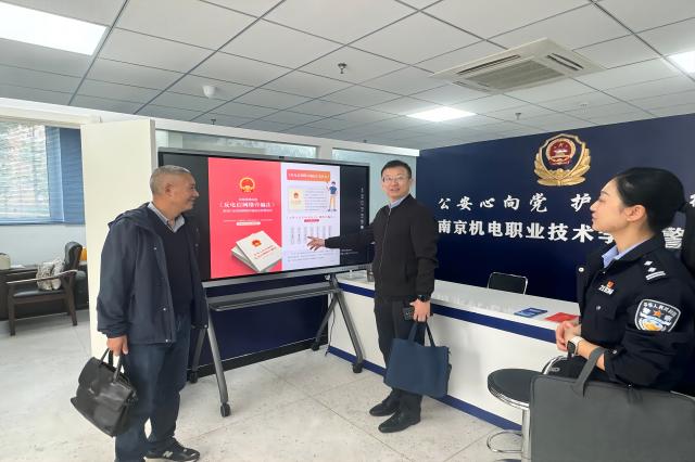 10月31日,南京市公安局内保支队处长武小青,教导员刘峰,区内保大队大队长周莹等莅临学校检查指导校园警务室工作情况,学校党委副书记、副校长赵学洪,保卫处负责同志陪同检查。