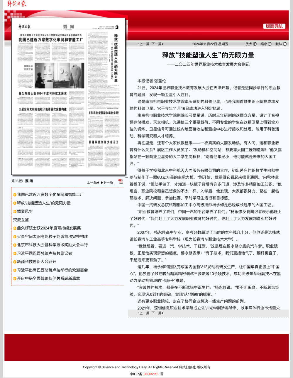 近日,科技日报报道我校释放“技能塑造人生”的无限力量,全文如下: