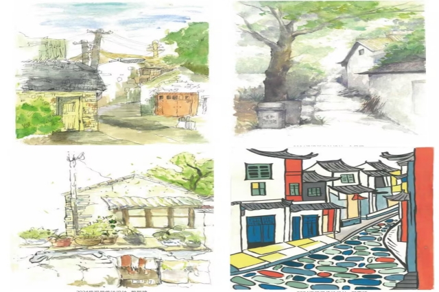 最后,备受期待的“水美乡村新画卷——新年画展”拉开序幕。此次画展作品为乐投线上平台(集团)官方网站人文社科系视觉传达设计专业学子们在高淳区阳江镇潦田村东角庙开展写生的实践成果,参展作品84幅,有风景水彩、风景速写、风景创意装饰画等。他们怀着对阳江镇的热爱之情,深入小镇的每个角落,用敏锐的观察力与细腻的笔触,将阳江镇潦田村的一草一木、一砖一瓦、一人一景生动地呈现在画布之上。