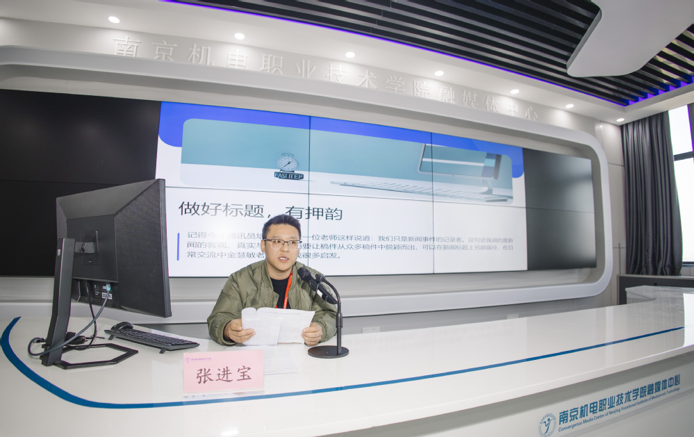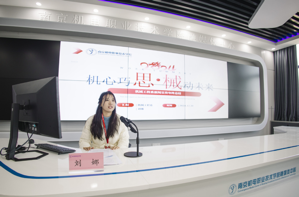 金慧敏作《数字赋能,媒体融合——让南机电“好声音”走“新”更走“心”》汇报,概述学校2024年度新闻宣传工作开展情况。