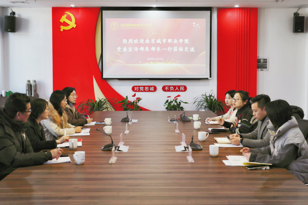 1月10日上午,南京城市职业学院党委宣传部部长朱晓蔚、副部长巴佳慧一行来我校开展宣传思想文化工作调研交流。此次调研旨在交流两校宣传部门在工作队伍建设、专题新闻策划、意识形态工作体系建设等方面的经验做法。我校党委委员、党委工作部副部长高水冕,马克思主义学院院长、党委宣传部副部长张玥及相关宣传工作人员参加交流活动。