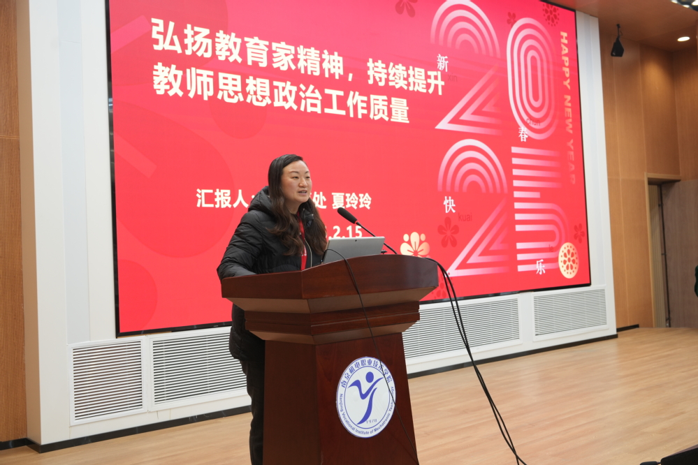 会上,学生工作处、党委工作部、马克思主义学院、教务处、人事处、党委宣传部依次作《党建引领,多方协调,社区育人成效初显》《坚持党建引领,聚焦“四横六纵”彰显特色党建在一站式社区建设中的示范引领作用》《多维视角下思想政治理论课教学的现状与展望》《深化“三全育人”综合改革,全面推进课程思政建设》《弘扬教育家精神,持续提升教师思想政治工作质量》《守正创新促成长,育人育心育品德》主题发言,汇报推动思想政治工作的创新实践和取得的扎实成效。