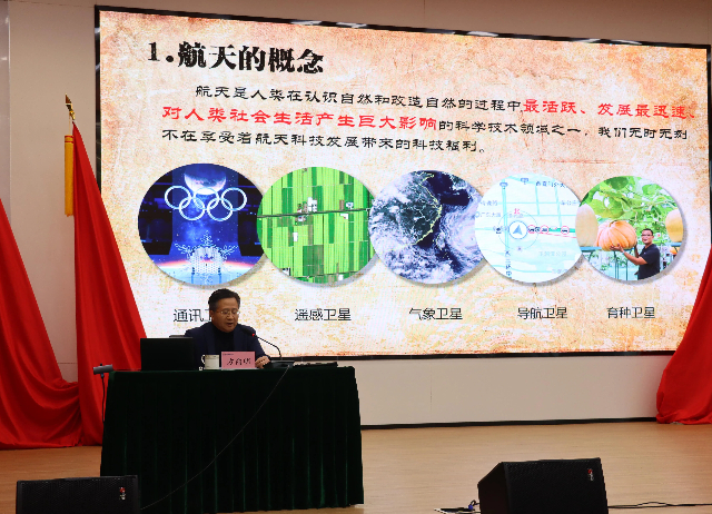 方向明首先带领大家回顾了人类航天事业的起源、发展历程以及关键里程碑事件,展现了航天事业从无到有、从小到大的壮丽图景。方向明详细介绍了新时代中国航天事业取得的辉煌成就,如载人航天、月球探测、北斗系统及天宫空间站等,彰显了我国航天事业的蓬勃发展和国际地位的提升。他强调,航天事业的高风险、高投入、国际化合作和技术创新驱动特点,及其对国家安全与国际地位的重要性。通过讲述航天先驱与当代杰出人物的故事,方向明弘扬了勇于探索、挑战极限、无私奉献和团队合作的航天精神,他鼓励大家在新时代背景下继续发扬航天精神,推动航天事业高质量发展,激励师生勇于追梦、担当责任,为航天事业贡献力量。