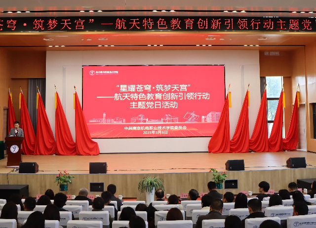 2025年3月6日14:00,乐投线上平台(集团)官方网站在乐学楼101举办了“星耀苍穹・筑梦天宫”航天特色教育主题党日活动,本次活动旨在响应习近平总书记的号召,激发学生的科学兴趣,弘扬航天精神,培养学生的创新精神和实践能力,推动学校专业建设与航天文化的深度融合。中国航天科技集团有限公司党组副书记、董事方向明,中国人才研究会副会长、航天科技教育联盟秘书长、北京航天探索馆馆长周岫彬,航天科技集团党群工作部三级业务经理张广科,北京神舟航天软件技术股份有限公司市场营销部主管张凇铭,学校党委书记、校长周庆礼,党委委员、副校长刁爱军,党委委员、副校长孔德丽,党委委员、纪委书记姜振宇,党委委员夏玲玲、党委委员高水冕以及全体党员教师和学生代表参加了本次活动。