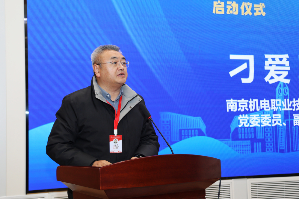 刁爱军在致辞中介绍了往届创新创意创业大赛中全校师生取得的丰硕成果。十年来,20000 余人次师生在创新创意创业大赛的舞台上,共产生作品4131 件,转化为知识产权成果 680 件。大赛推荐优秀作品在“互联网 +”“挑战杯”“赢在南京” 等高级别创新创业大赛中获奖40余项,孵化 30 余创业项目,在校园内营造出浓厚的创新创业氛围,成为培养创新人才的重要平台。他表示,学校以赛为桥梁,开辟育才新航道;以赛启智慧,锻造创新领航者;以赛促融合,搭建跨界新舞台。深度融合教育与社会产业脉动,加速智能制造、数字信息等领域产学研一体化进程,紧密对接教育链、人才链与产业链、创新链,精心描绘产教、校地深度协同的全新画卷。